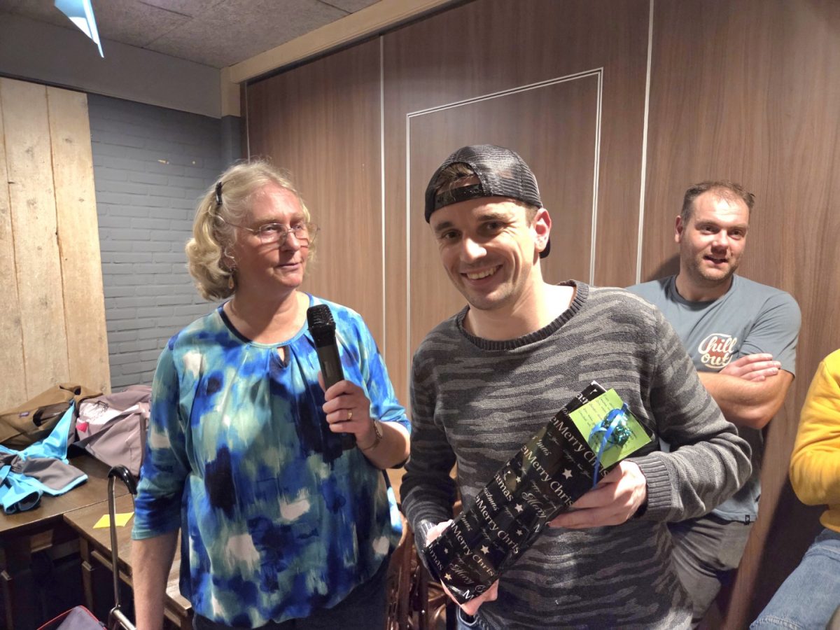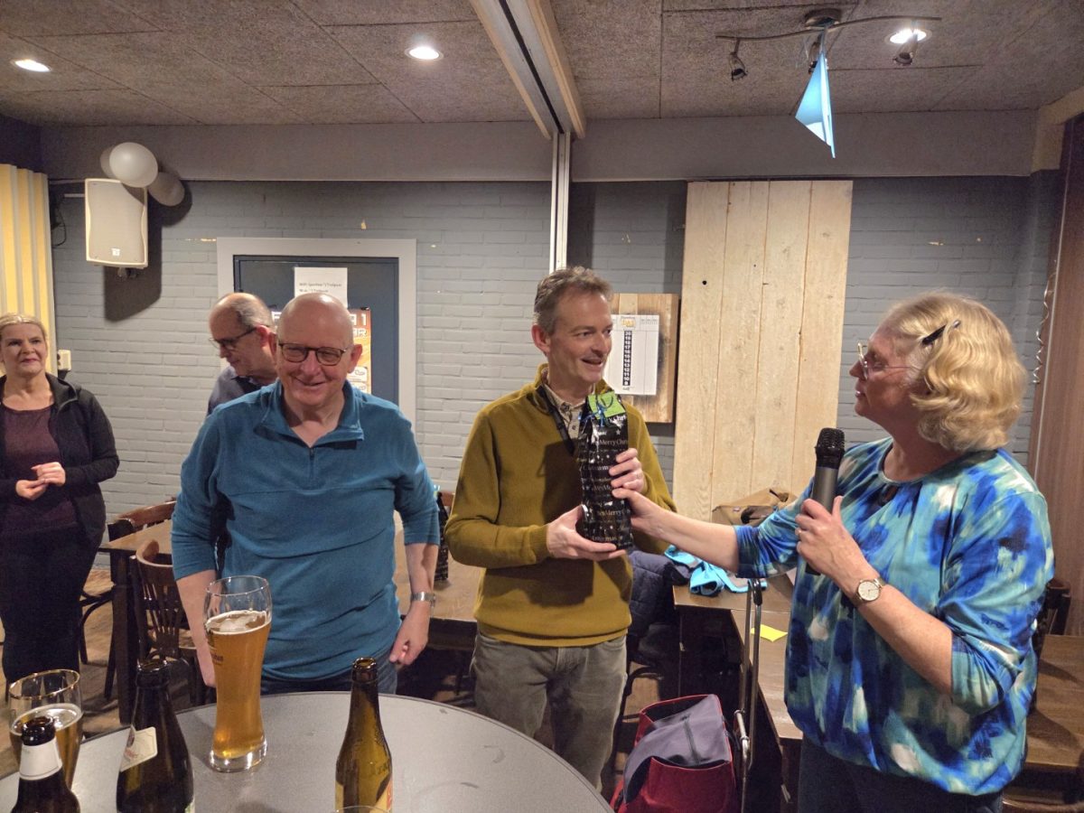 Ook dit jaar zijn er diverse leden of zelfs partners van leden geweest die hebben meegeholpen met clubactiviteiten. Tijdens de prijsuitreiking van het mix-toernooi werd voor deze mensen een fles wijn mét gedichtje overhandigd door Christel. Dat is hieronder op de foto’s te zien.